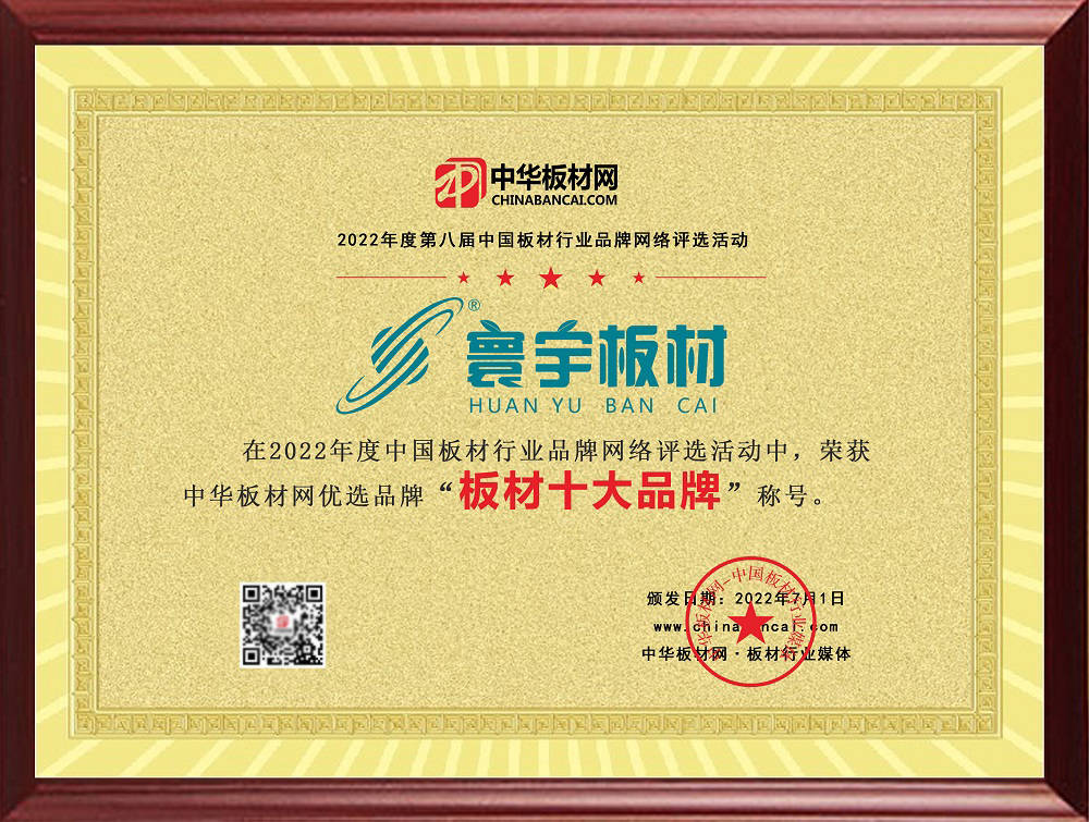 助力板材企業(yè)品牌成長,打造板材行業(yè)品牌標(biāo)桿。中華板材網(wǎng)初心如磐,同心同路同行。2022年7月1日,第八屆2022年度中國板材行業(yè)品牌網(wǎng)絡(luò)評選活動圓滿收官,各項排行榜重磅發(fā)布!祝賀寰宇板材榮獲2022年度中華板材網(wǎng)優(yōu)選榜“板材十大品牌”稱號。
