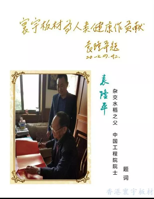 寰宇板材系列產品符合“環(huán)保、低碳、綠色、健康”消費理念, 深受廣大消費者的喜愛和社會的認可,無市場監(jiān)管、消費者投訴等不良記錄。寰宇板材系列產品為湖南省名牌產品,2017年榮登“中國板材十大品牌”;2018年榮膺“中國十大生態(tài)板品牌”“中國板材十大品牌”,并獲得世界雜交水稻之父、中國工程院院士袁隆平先生親筆題詞:“寰宇板材為人類健康作貢獻”;2019年再次榮登“中國十大板材品牌”。