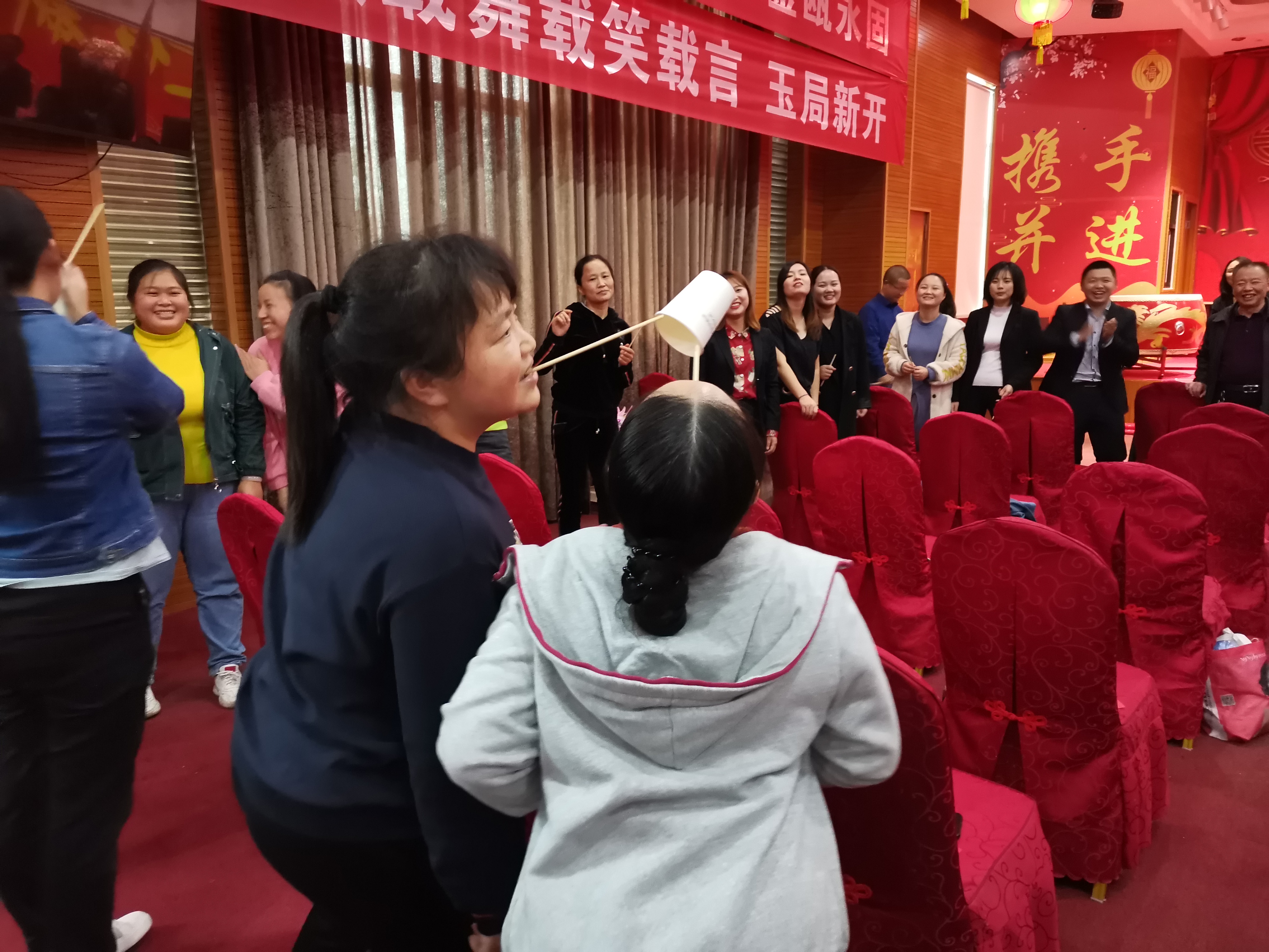 團(tuán)結(jié)一心,其利斷金,筷子傳紙杯環(huán)節(jié)里,大家彼此協(xié)作,共同努力